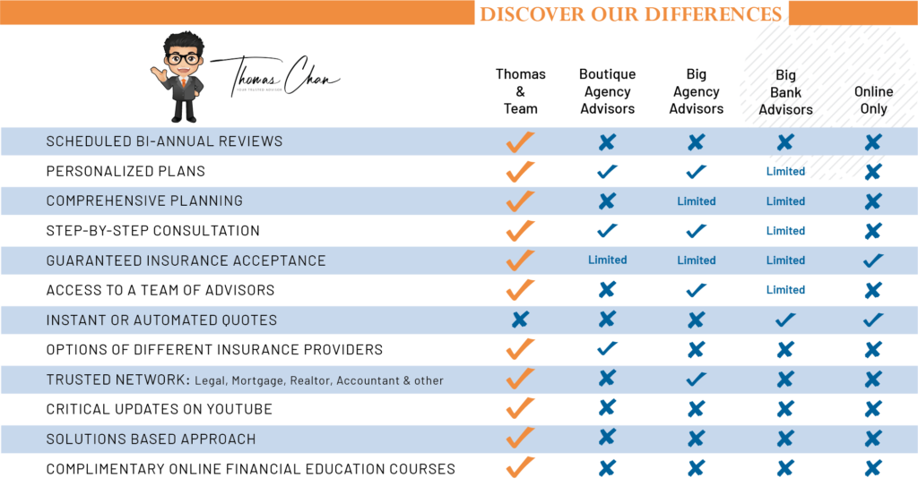 Opting for Thomas C. Chan Financial Services for your life insurance and retirement needs places your economic well-being in the hands of an experienced professional with over 13 years of experience. Operating across Canada, including in key cities like Vancouver and Toronto, Thomas has successfully assisted hundreds of families in attaining financial independence and safeguarding their financial assets.